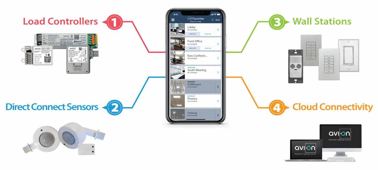 The benefits of Avi-on Lighting Controls include security, ease-of-use, and electrical efficiency.